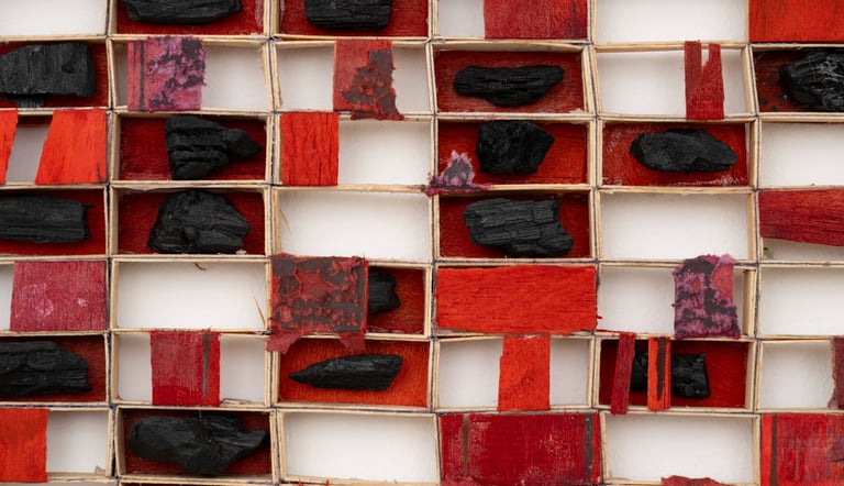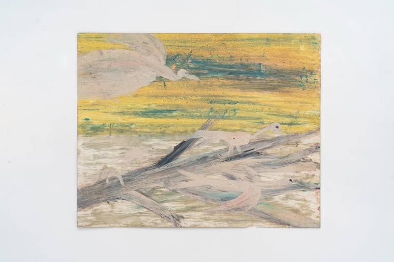 As assemblages de caixas de fósforo de Antonio Társis reconfiguram materiais frágeis e negligenciados em delicadas constelações de forma e memória. O turbulento relevo em bronze de Erika Verzutti, inspirado nas atmosferas luminosas de Turner, encontra a rede tátil da estrutura tecida de Ernesto Neto, uma obra que evoca comunhão, continuidade orgânica e sensibilidade coletiva. Esses encontros se estendem aos paisagens visionárias de Frank Walter, à escultura áspera em concreto de Ivens Machado e às abstrações atmosféricas de Janaina Tschäpe, onde a fluidez se torna um modo de percepção, como nos desenhos a óleo sobre papel de Ana Claudia Almeida.