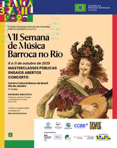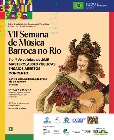 A Semana de Música Barroca da UNIRIO, em parceria com o Centro de Música Barroca de Versalhes e o Consulado Geral da França no Rio de Janeiro, é um projeto artístico-pedagógico que celebra mais de uma década de intercâmbio e cooperação internacional. Em sua sétima edição, a iniciativa reafirma seu compromisso com a formação de jovens músicos e a difusão do repertório barroco francês no Brasil.